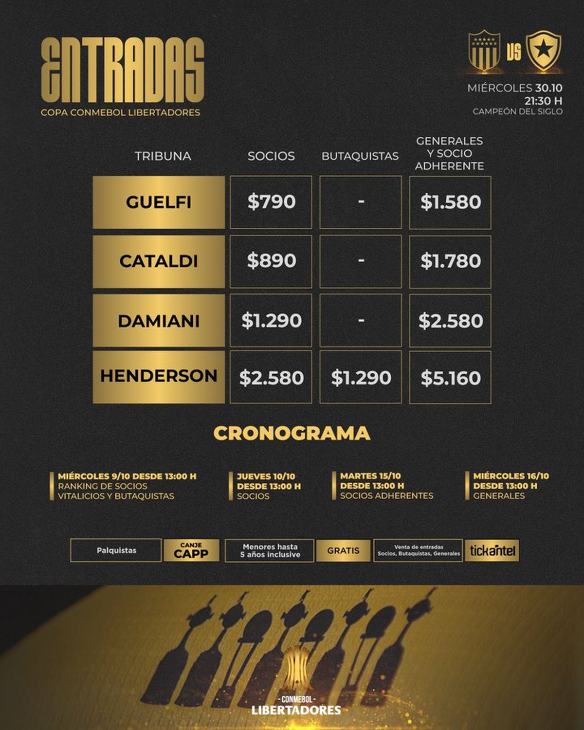 Este miércoles 9, a partir de las 13:00 horas, se habilita la venta por ranking de socios, la venta a socios vitalicios, a butaquistas y el canje de entradas a palquistas por CAPP.