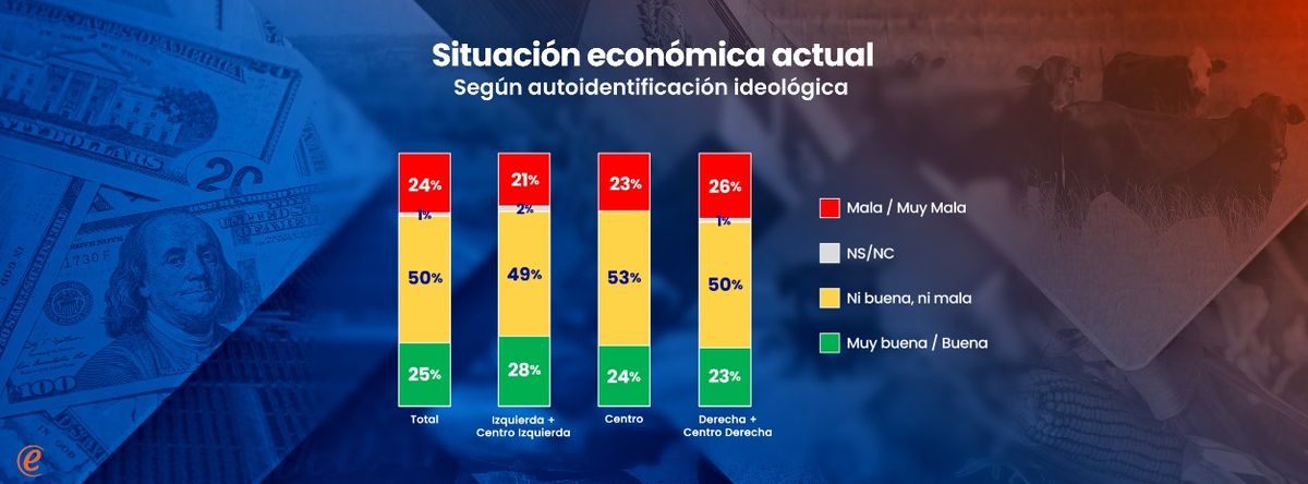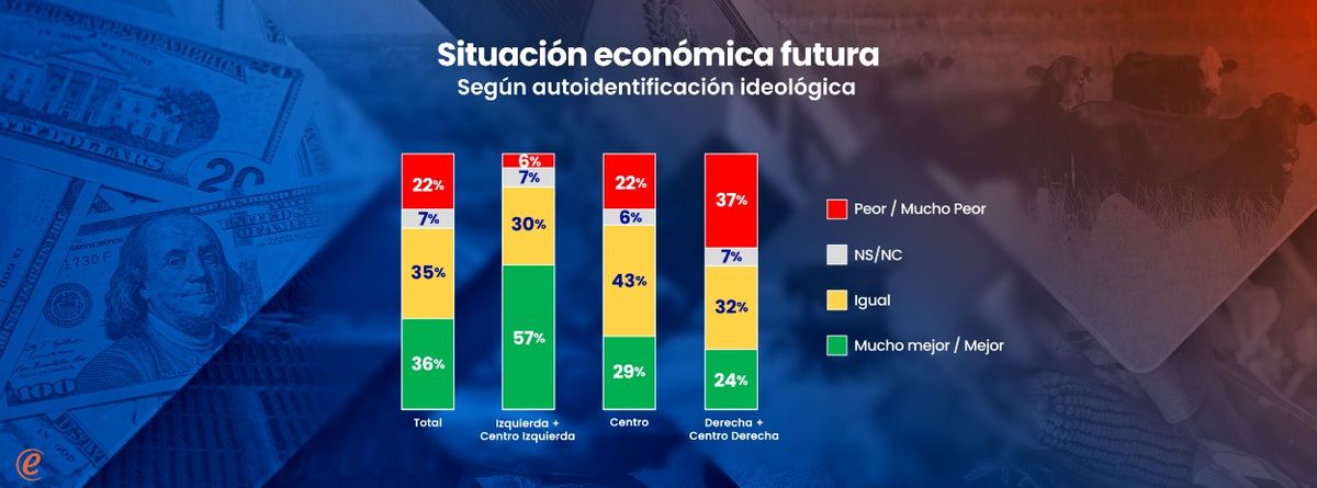 Los juicios sobre la economía actual son muy similares en todos los segmentos ideológicos. Sin embargo, las expectativas futuras sí varían ideológicamente. Entre los votantes de izquierda predomina el optimismo, mientras que entre los votantes de derecha hay opiniones divididas (de saldo negativo).