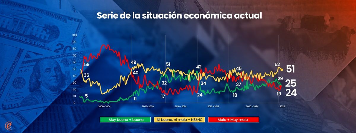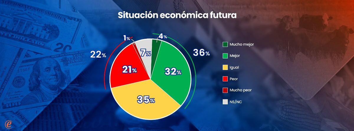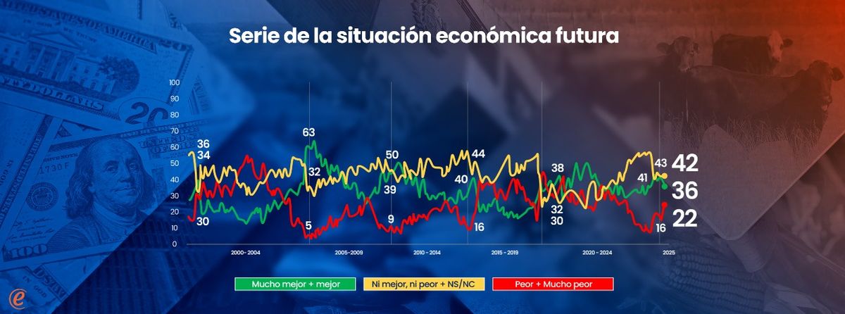 Los juicios sobre el futuro también presentan un escenario dividido, pero de saldo moderadamente favorable: los que creen que dentro de un año la economía estará mejor (o mucho mejor) superan en 12 puntos a los que creen que estará peor (o mucho peor).