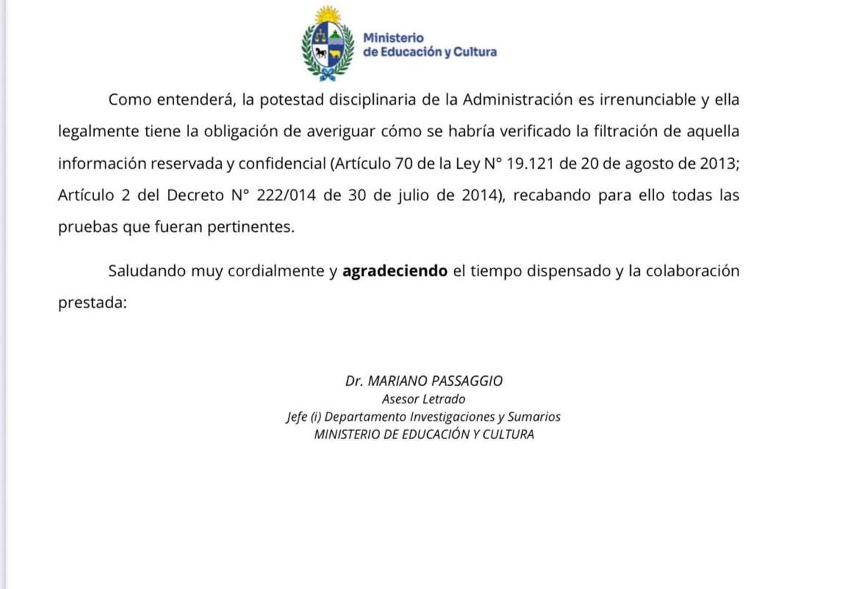 Mahía dijo a Subrayado este viernes de tarde que fue “un exceso de celo” del abogado y jefe del departamento de investigaciones y sumarios del Ministerio de Educación y Cultura (MEC) Mariano Passaggio.