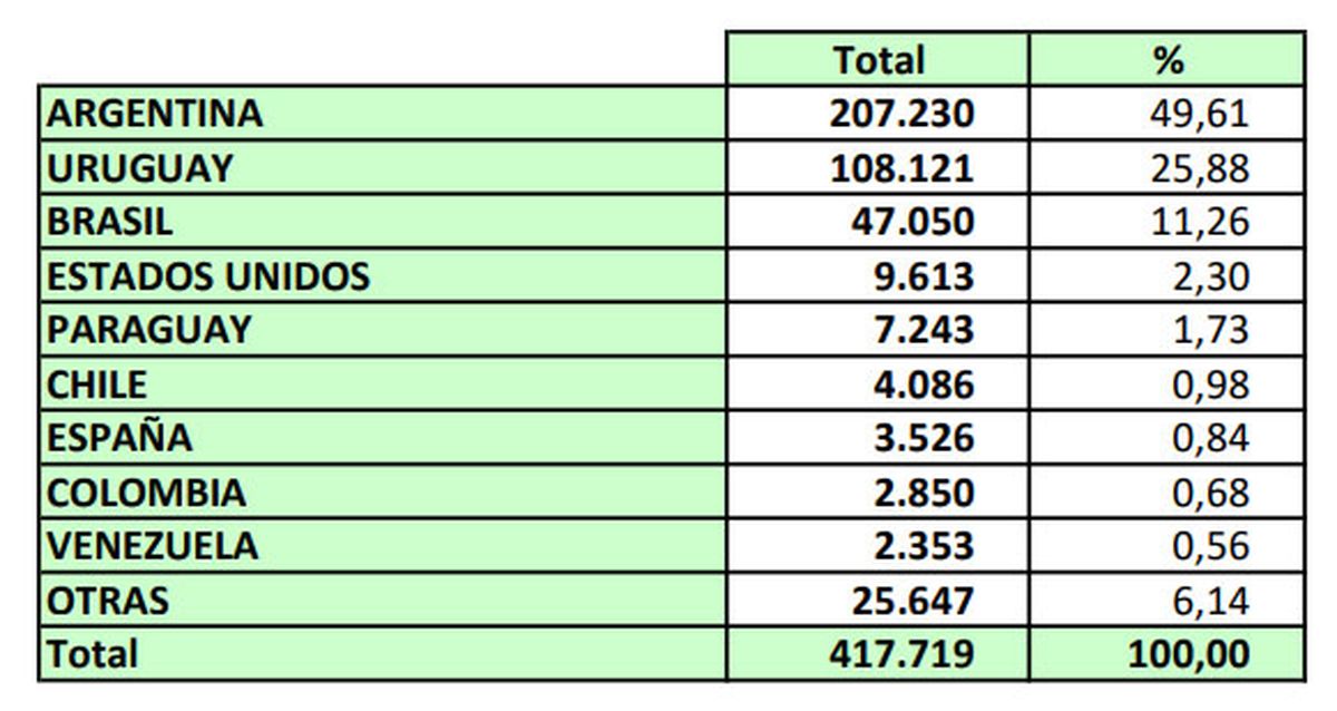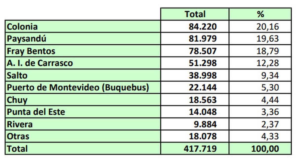 Los argentinos representan así el 49,6% de la cantidad de personas que ingresaron a Uruguay en ese período.