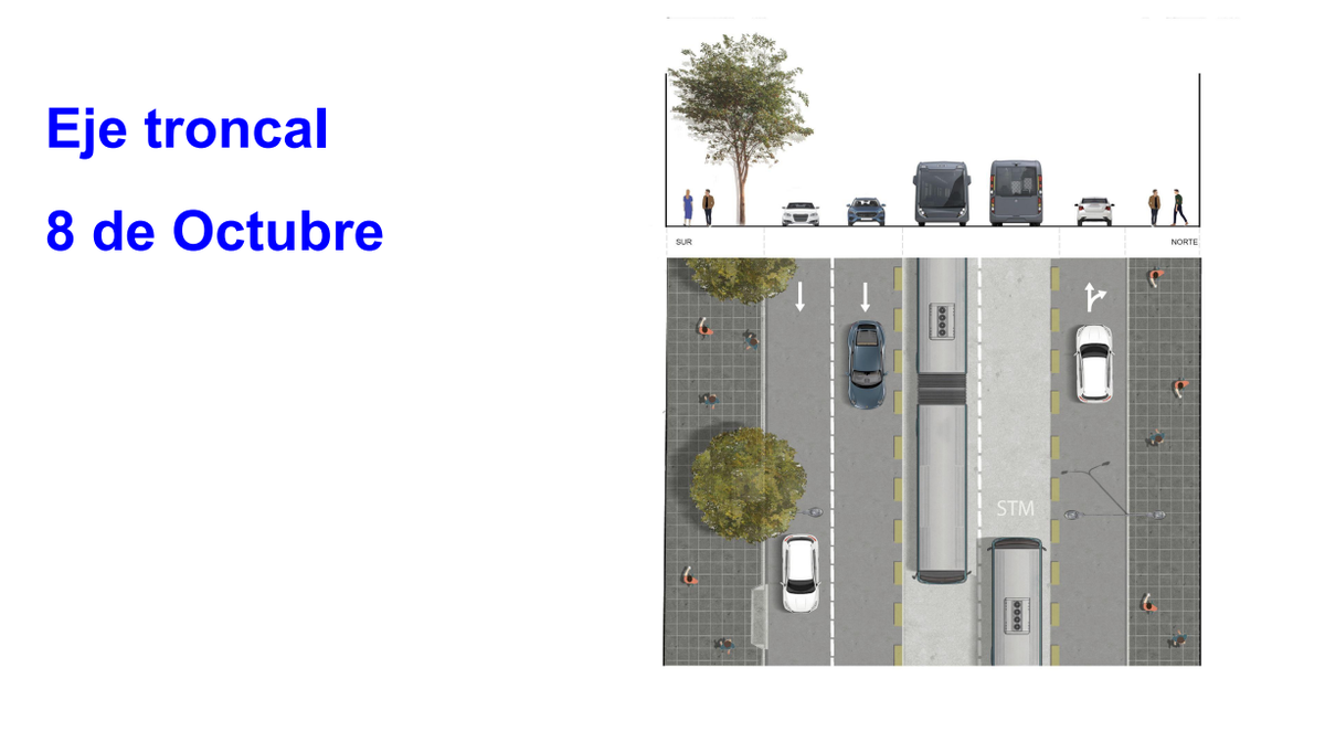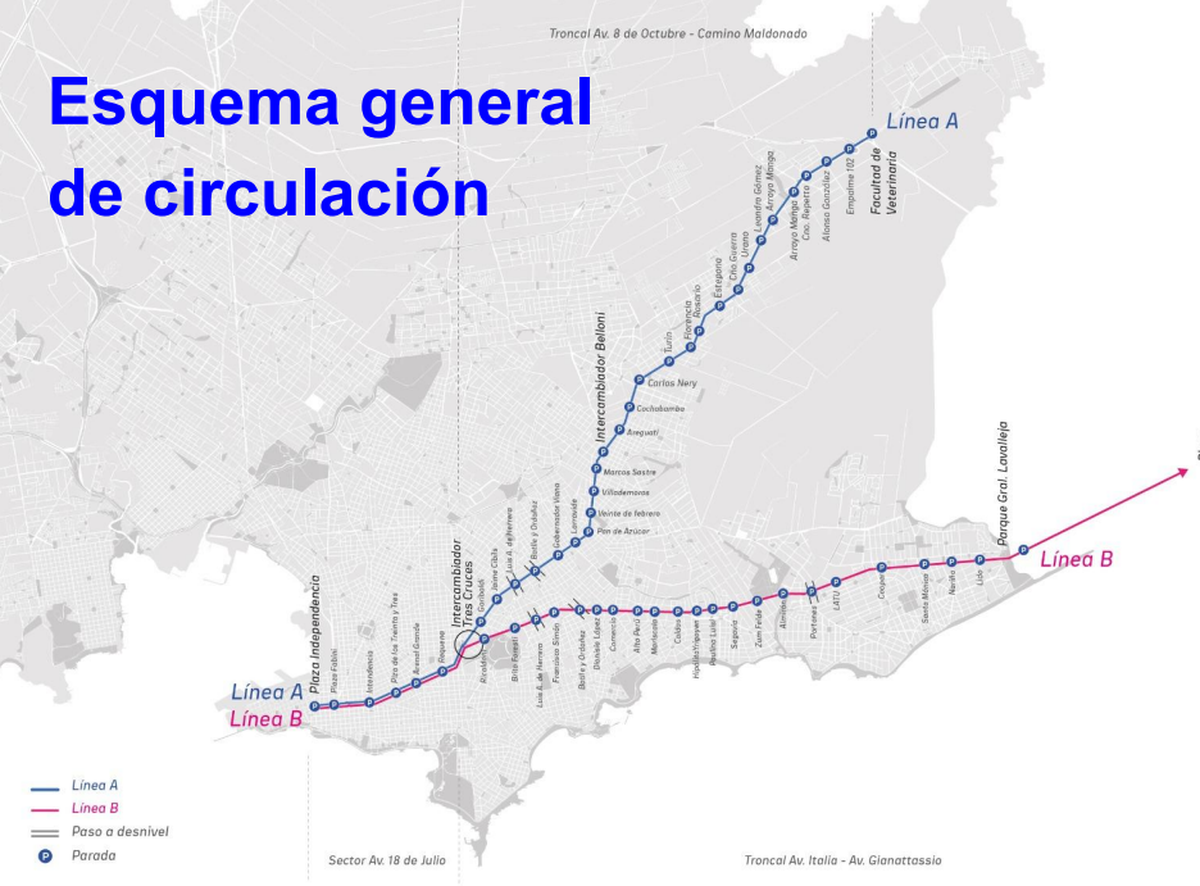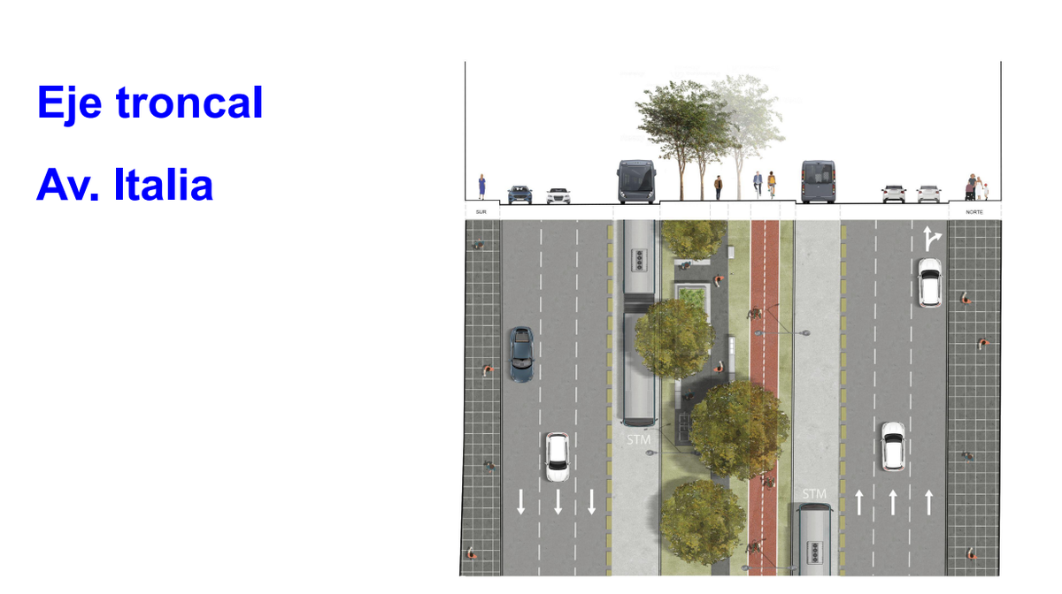 El plan incluye 50 kilómetros de troncales de circulación exclusiva para el transporte colectivo, con dos grandes ejes: Zonamérica–Plaza Independencia y El Pinar–Plaza Independencia.