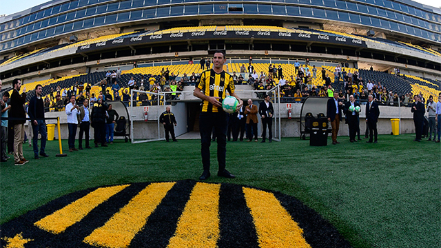 Maxi Rodríguez fue presentado este viernes en el estadio Campeón del Siglo como nuevo jugador de Peñarol.