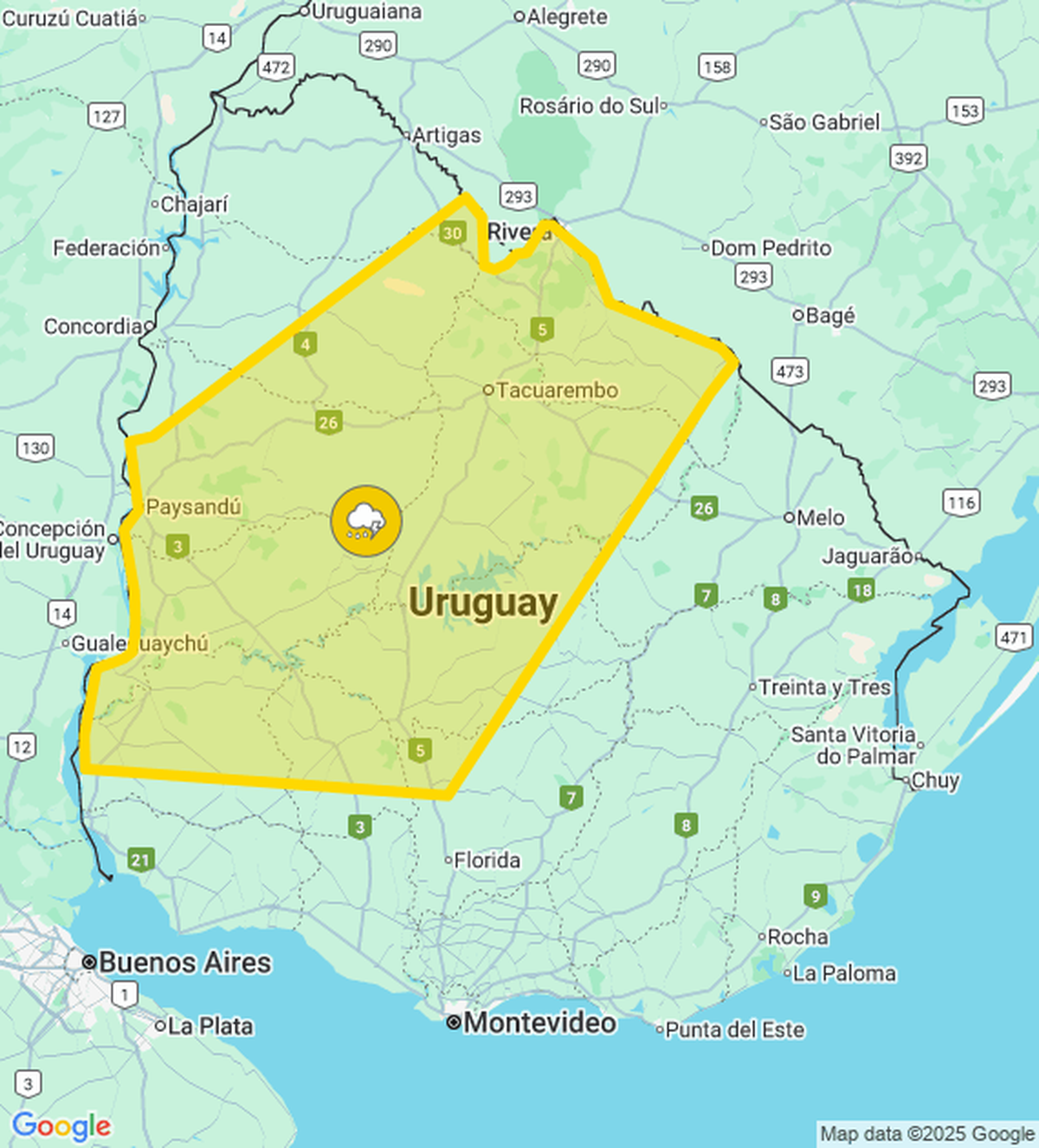 El Instituto Uruguayo de Meteorología ( Inumet) actualizó nuevamente la advertencia amarilla que se debe a un frente cálido en el país y que genera tormentas. La alerta es por persistencia de tormentas puntualmente fuertes y lluvias abundantes.