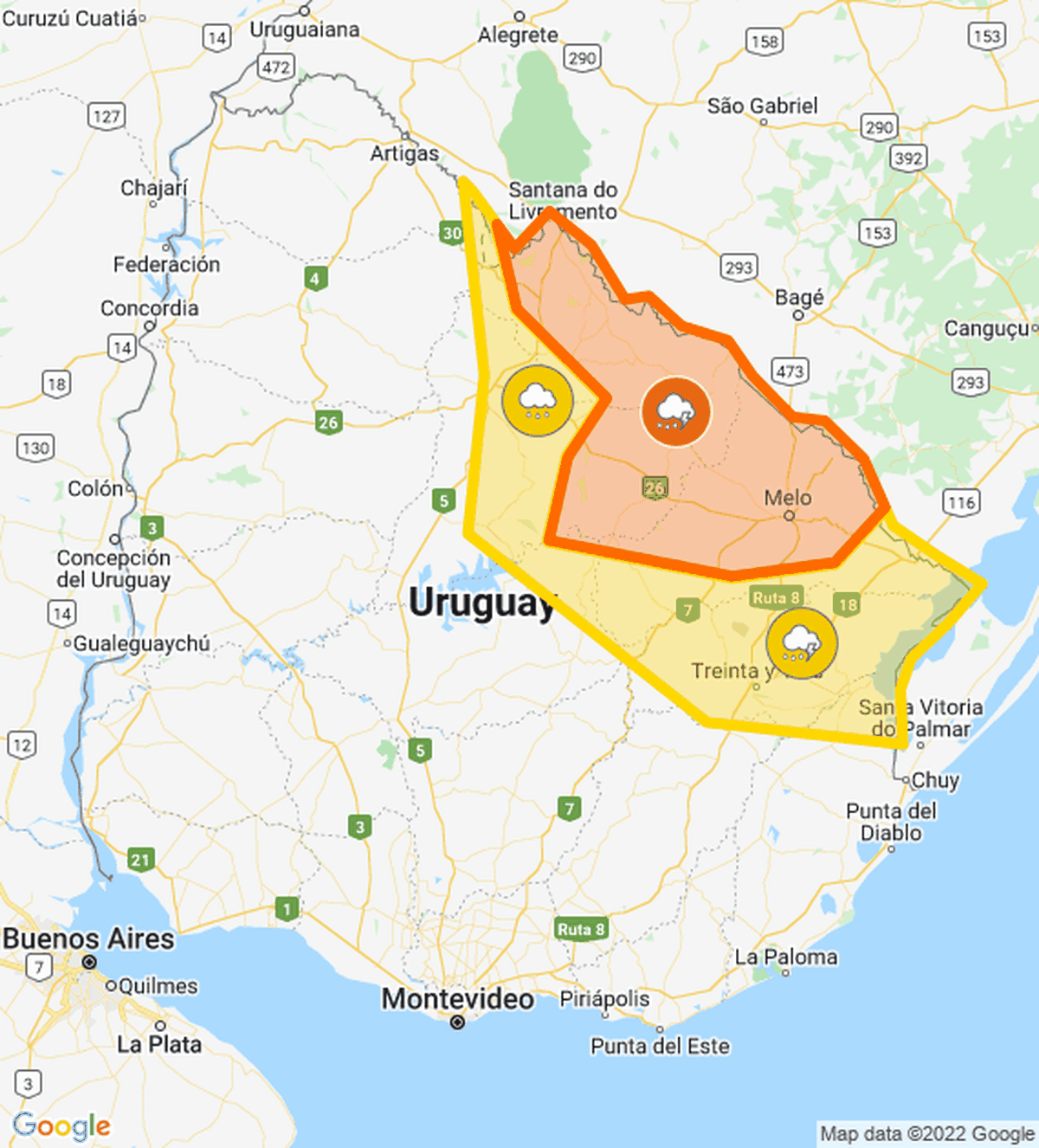 Meteorología actualizó alerta color naranja por tormentas fuertes y la amarilla, que además de tormentas es también por lluvias intensas. La actualización será a las 16.15 de la tarde de este viernes.