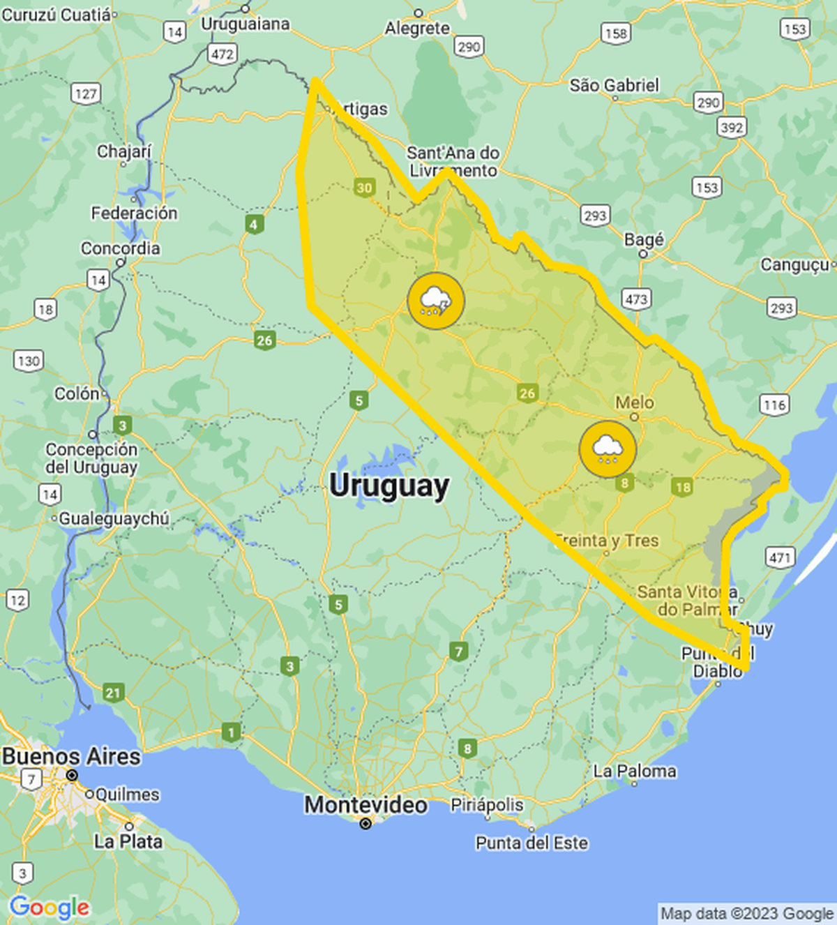 El Instituto Uruguayo de Meteorología cesó alerta naranja y mantiene la amarilla por persistencia de tormentas y lluvias para parte del país.