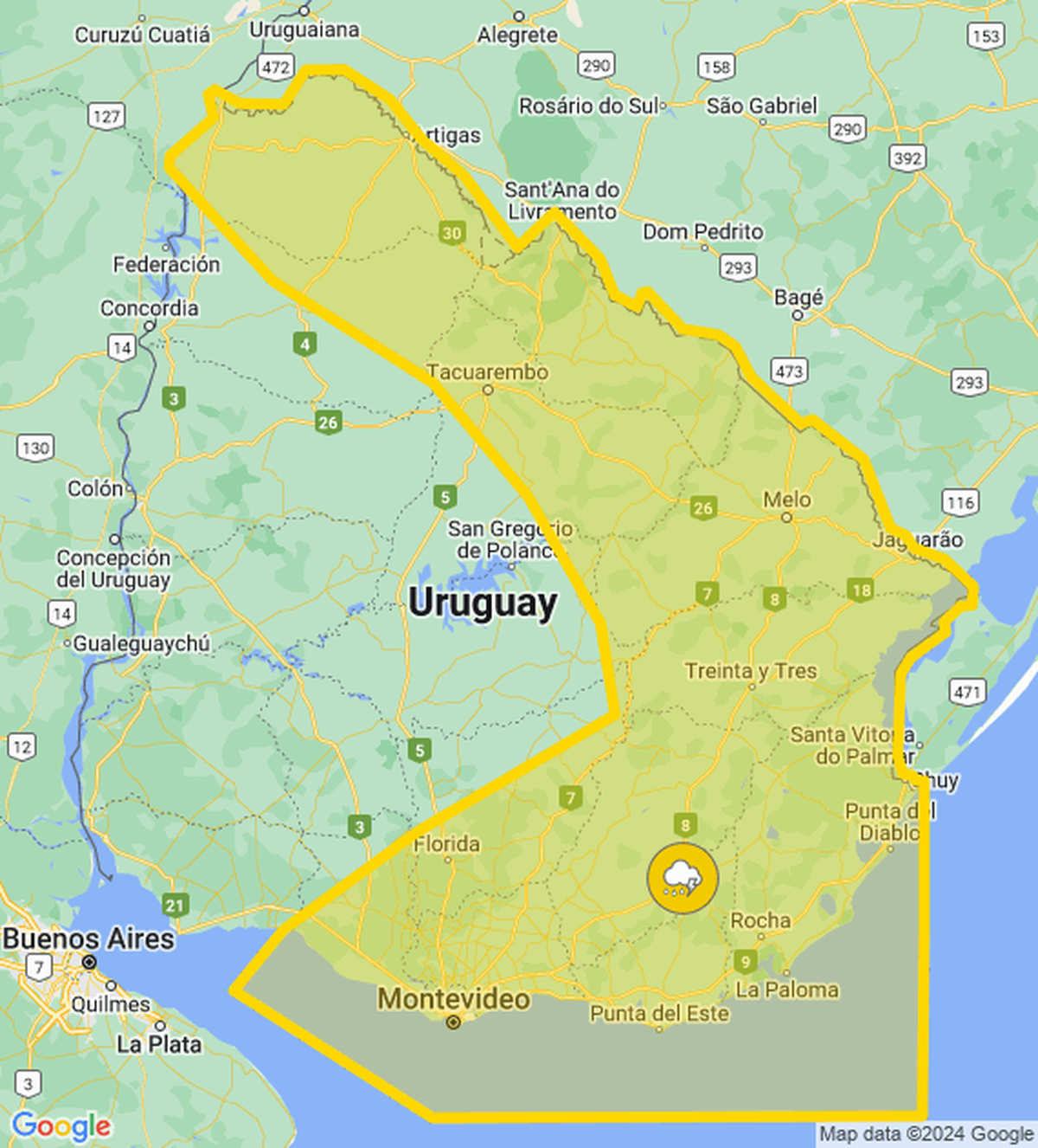 El Instituto Uruguayo de Meteorología cesó la alerta color naranja y mantuvo la de color amarillo para varios departamentos, por persistencia de tormentas y lluvias.
