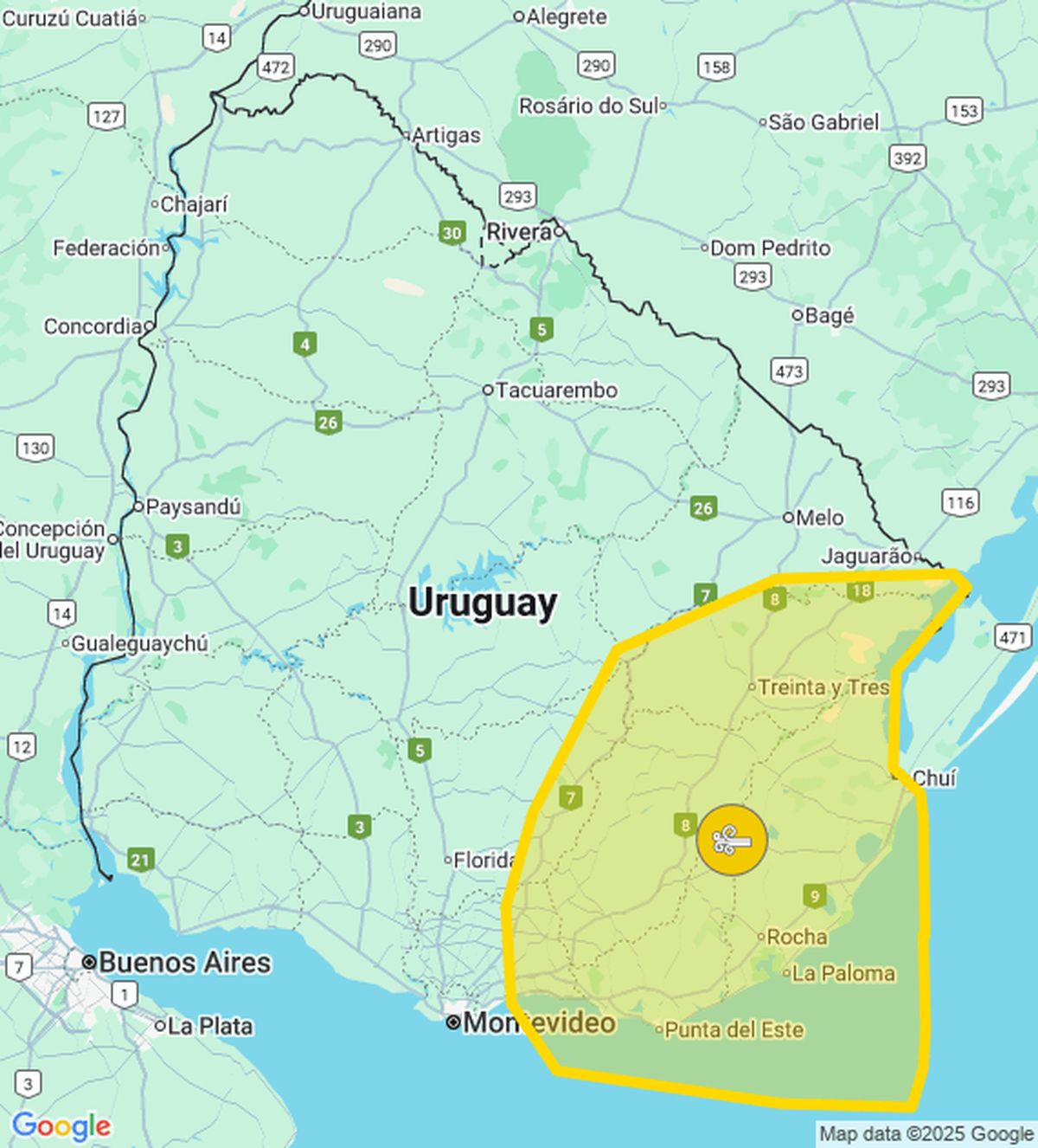 El Instituto Uruguayo de Meteorología (Inumet) emitió una advertencia amarilla por vientos fuertes y persistentes para varios departamentos al este del país.