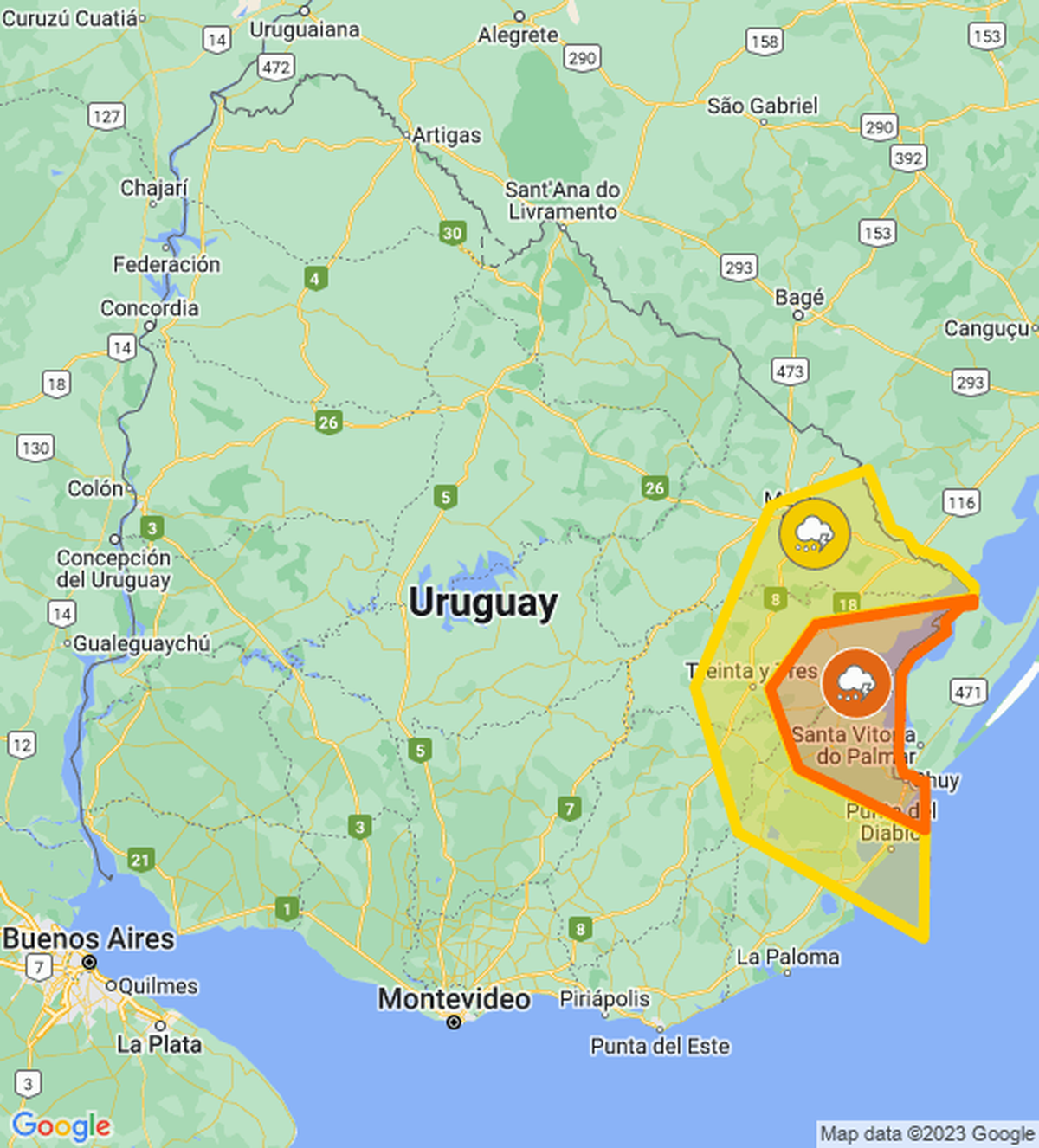 El Instituto Uruguayo de Meteorología emitió una alerta naranja y actualizó la que ya regía de color amarillo para parte del país. El pronóstico es por persistencia de tormentas y lluvias.