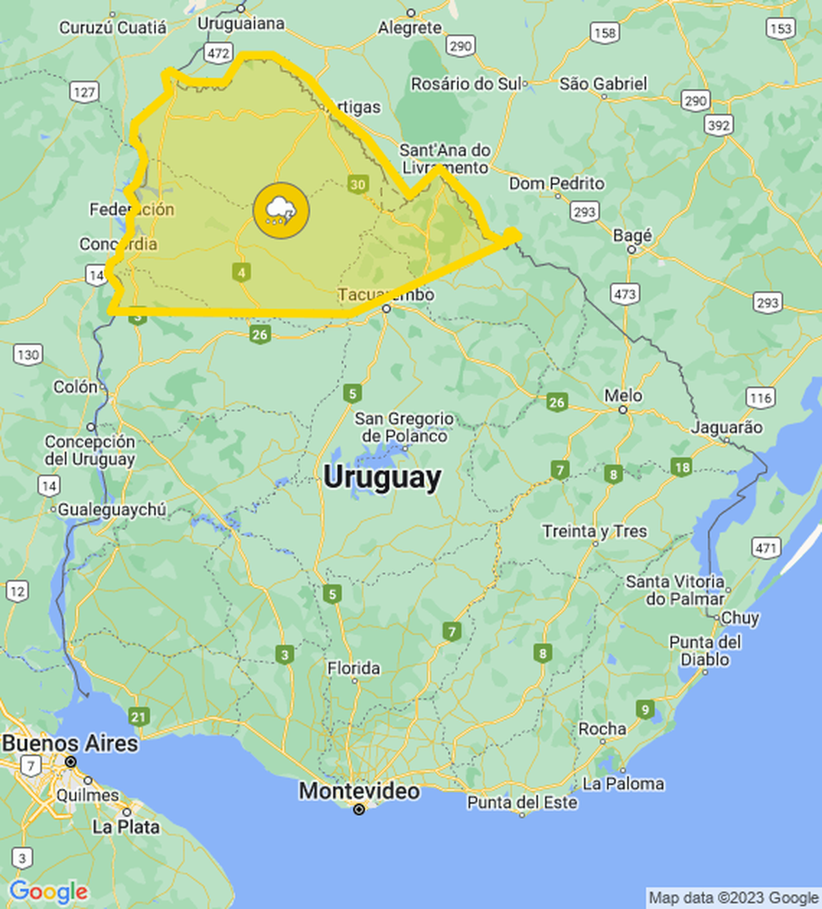 El Instituto Uruguayo de Meteorología (Inumet) emitió una alerta amarilla para cinco departamentos por tormentas fuertes y lluvias intensas.