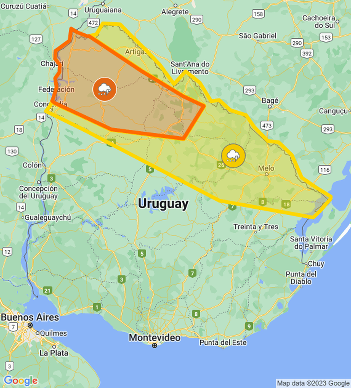 Meteorología extendió hasta las 19:30 la doble alerta por tormentas fuertes que rige para el norte del país.