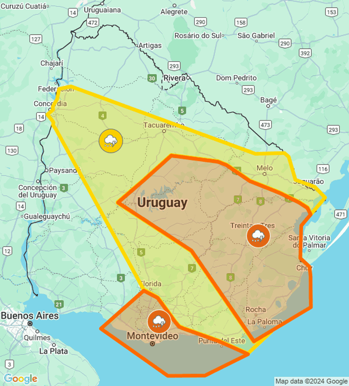 Meteorología volvió a actualizar la doble alerta por tormentas fuertes; ahora abarca Montevideo