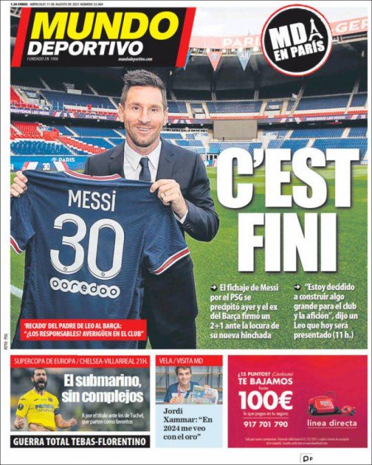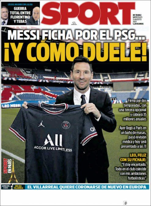 En tanto, los diarios deportivos españoles y franceses valoran lo que será la ausencia de Messi en LaLiga y en particular para el Barcelona.