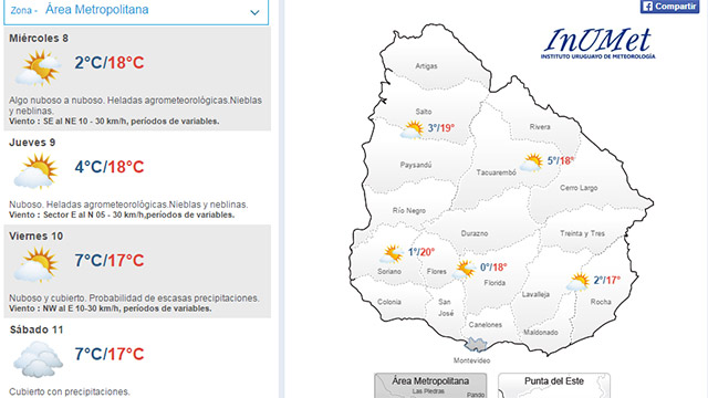 Según el Instituto de Meteorología este viernes se presentará algo nuboso a nuboso con heladas agrometeorológicas. También se esperan nieblas y neblinas.