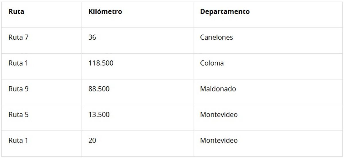 El Ministerio del Interior informó este jueves sobre la ubicación de los cinco radares de control de velocidad instalados por Policía Caminera en rutas nacionales y zonas urbanas con alto flujo de vehículos.