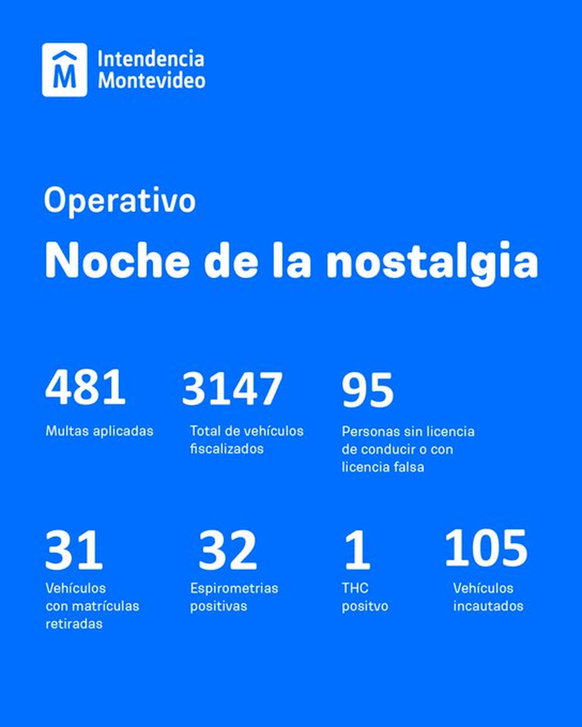 La Intendencia de Montevideo publicó un informe actualizado a las 7 de la mañana de este lunes 25 de agosto. Operativo por la Noche de la Nostalgia sin accidentes fatales y con más de 3.100 vehículos fiscalizados.