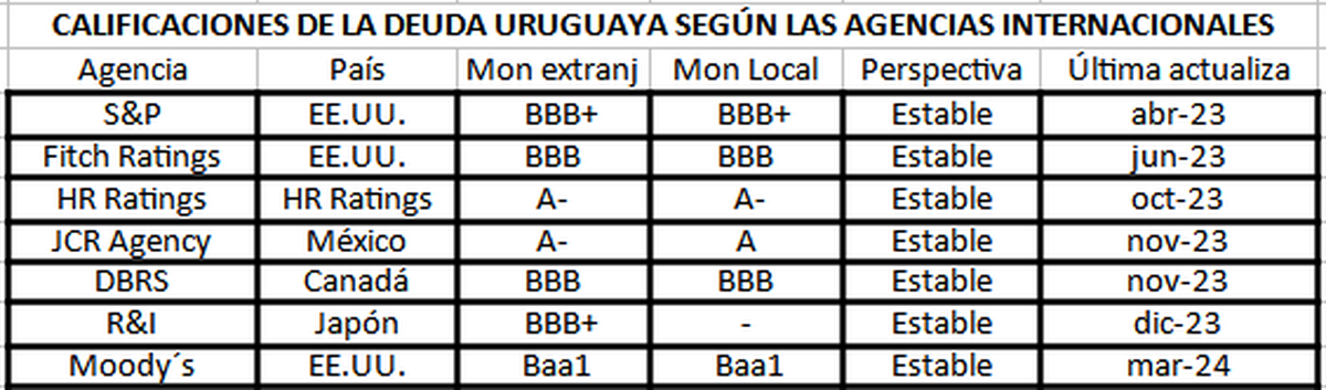 Ese nivel alto ya lo había adjudicado a Uruguay la calificadora Standard & Poor's y la agencia japonesa R&I.