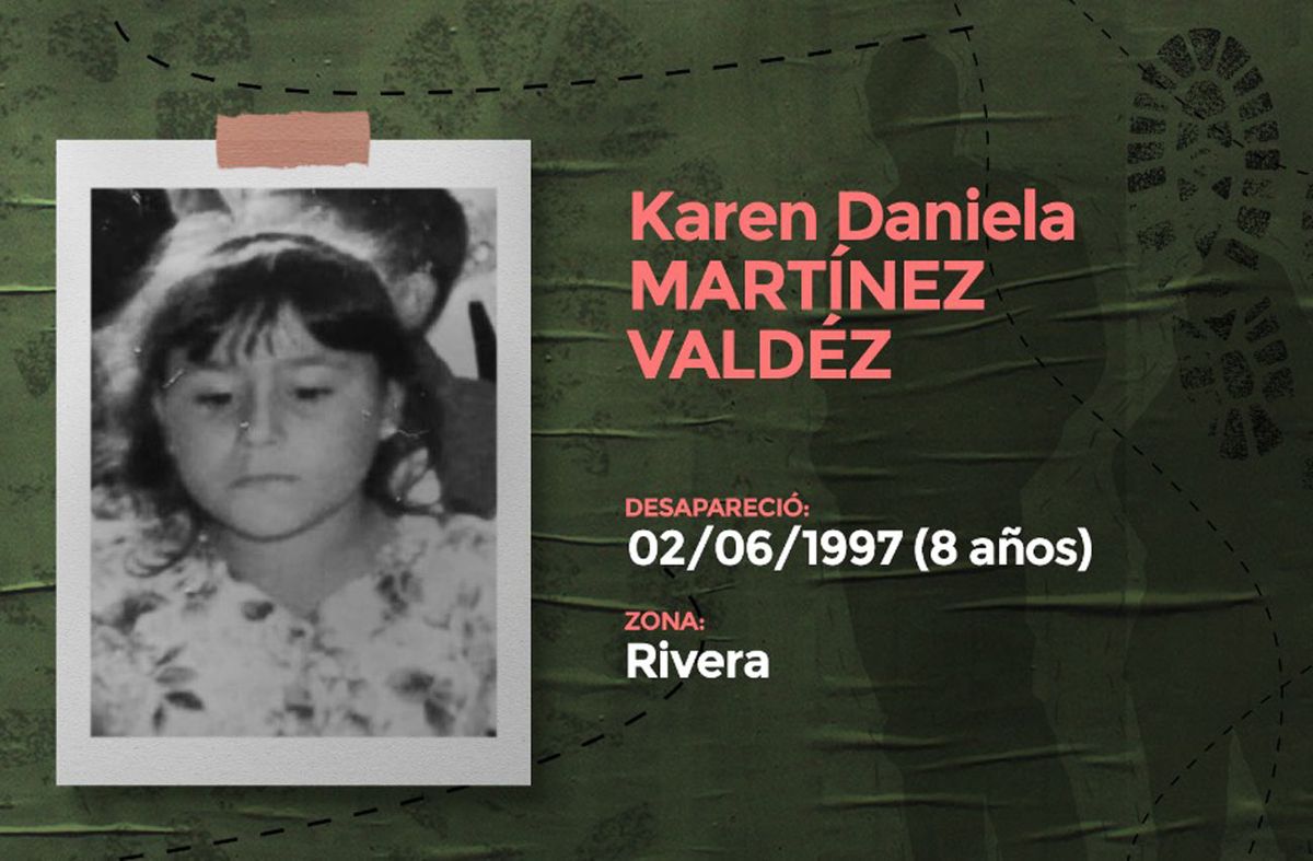 Karen Martínez desapareció el 2 de junio del año 1997 en el departamento de Rivera. La pequeña llegó de la escuela, y de forma “misteriosa”, desapareció. El departamento estuvo conmocionado por varios meses, pero el tiempo transcurrió y jamás se supo más nada de la niña, que hoy tendría 35 años. Si bien la investigación jamás se cerró, hoy no hay elementos que permitan avances significativos.