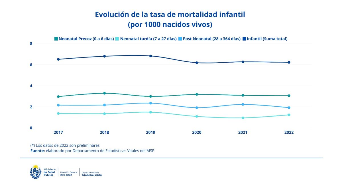 El Ministerio de Salud Pública informó que "se mantiene la tendencia a la baja". La mortalidad neonatal tardía (de 7 a 27 días) aumentó de 0,95 a 1,24.
