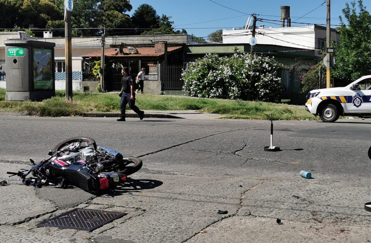 El auto iba por Labandeira e intentó cruzar Herrera, cuando una moto lo chocó.