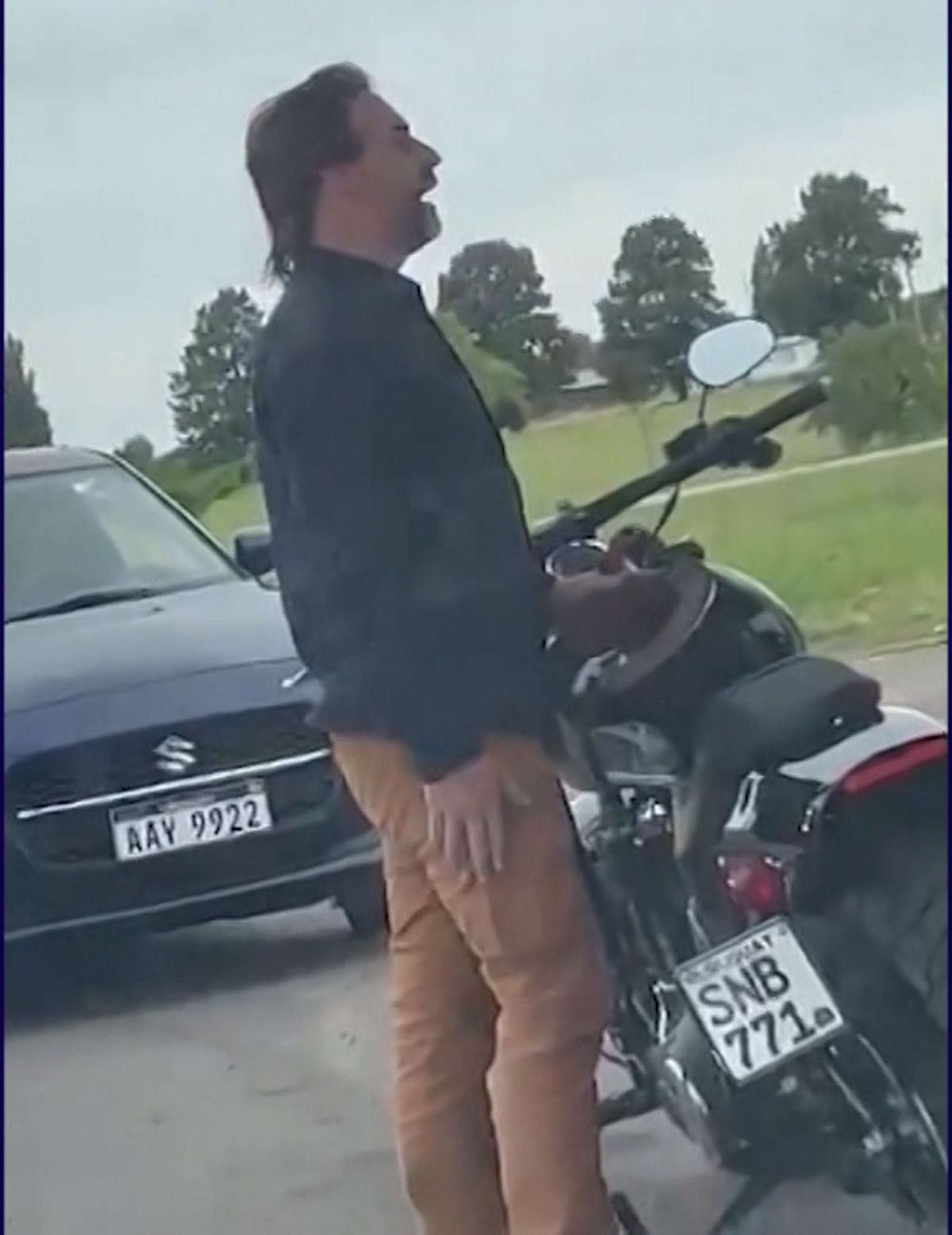 Lacalle Pou con la moto cargando nafta:
