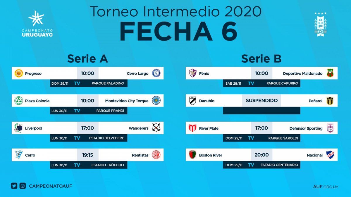 Los demás partidos de la sexta fecha de este torneo que se disputa entre Apertura y Clausura, y que suma puntos para la Tabla Anual, se jugarán el lunes.