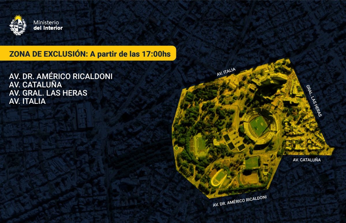 Nacional – Peñarol en el estadio Centenario con zona de exclusión desde la hora 17