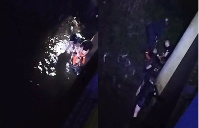 Video: policías rescataron a una joven que se tiró a un arroyo desde un puente en Melo