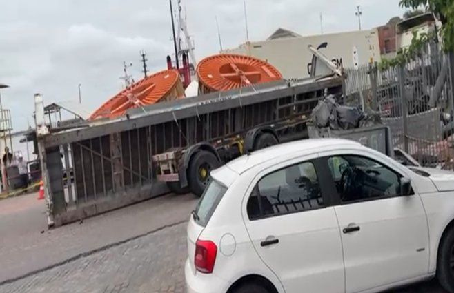 Dos bobinas cayeron sobre un camión en el Puerto de Montevideo y dañaron la cabina; no hay lesionados