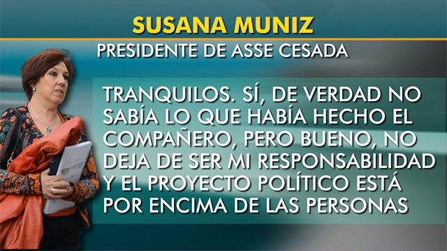 Susana Muñiz renunció este lunes como máxima autoridad de ASSE luego de que el presidente Tabaré Vázquez decidiera remover a los tres directores del gobierno en el organismo por un cúmulo de irregularidades.