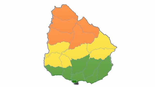 Meteorología señala que “mientras no entre en vigencia la advertencia naranja, estos departamentos continúan en nivel amarillo previéndose los mismos fenómenos pero con menor intensidad”.