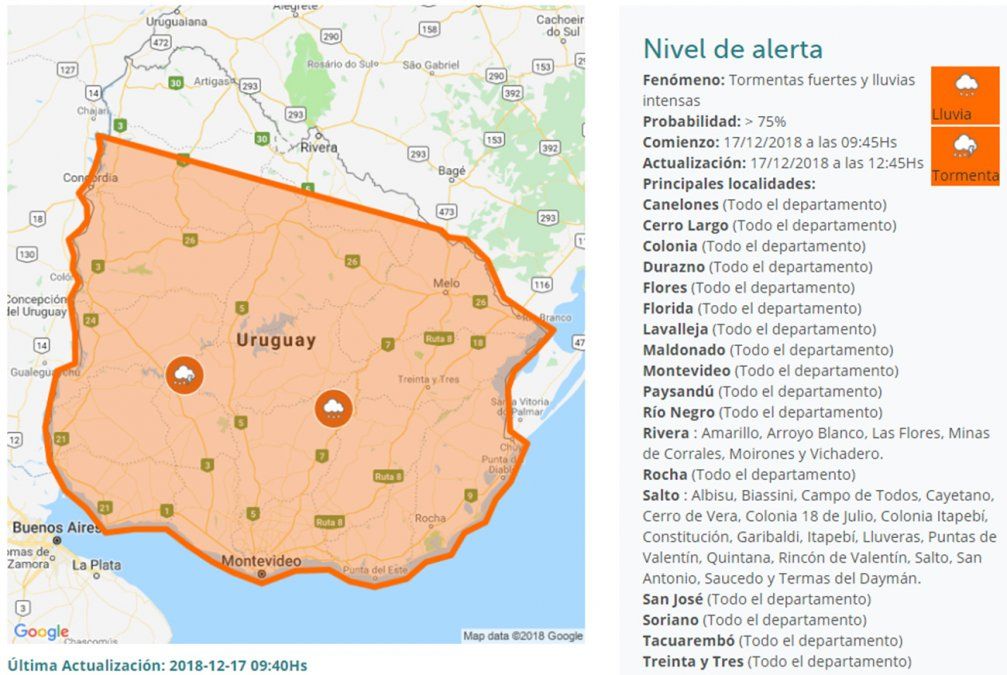 El llamado de atención tiene validez hasta las 12.45 del mediodía.
