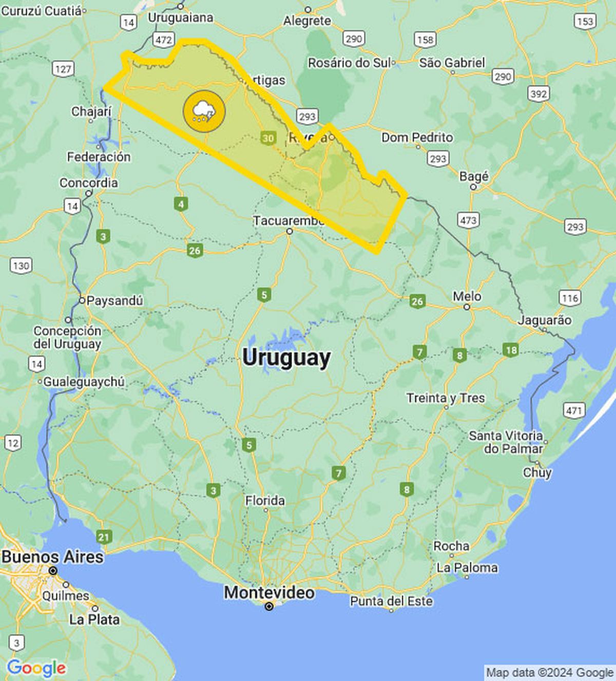 Este sábado continúan, y de mañana rige una alerta amarilla por tormentas fuertes y lluvias intensas para el norte del país, (ver mapa abajo).