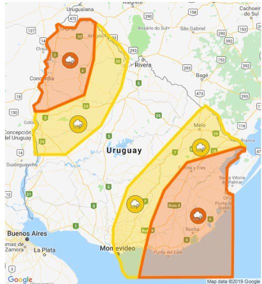 Meteorología emitió cuatro nuevas advertencias, dos de nivel naranja y dos amarillas, por tormentas fuertes.