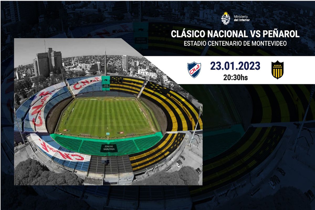 El Ministerio del Interior informó cómo será el operativo policial por el clásico entre Nacional y Peñarol a disputarse en el Estadio Centenario este lunes 23 de enero.