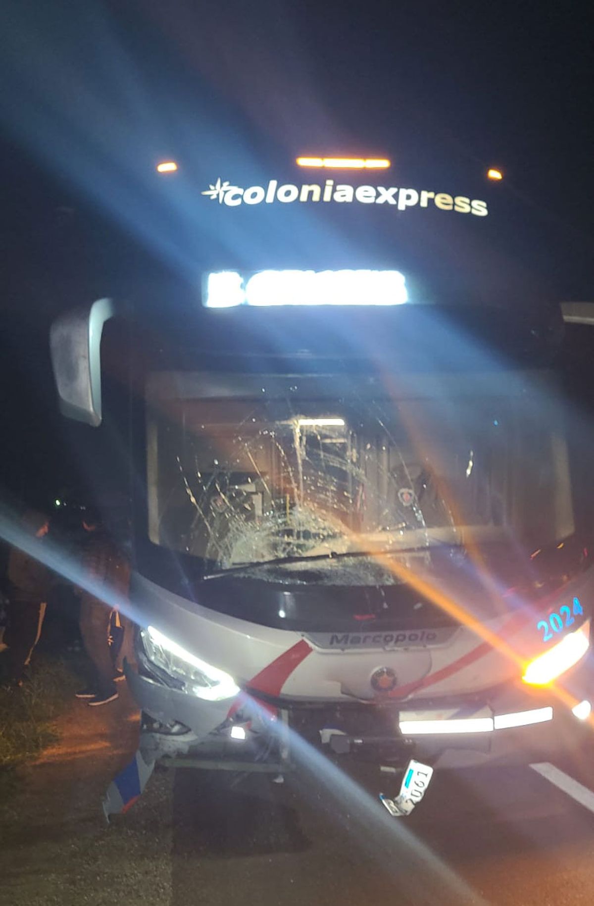 El ómnibus circulaba hacia Montevideo cuando en el kilómetro 66 de ruta 1 embiste de atrás a un auto. El conductor del auto sufrió lesiones varias y fue trasladado a un centro de salud.