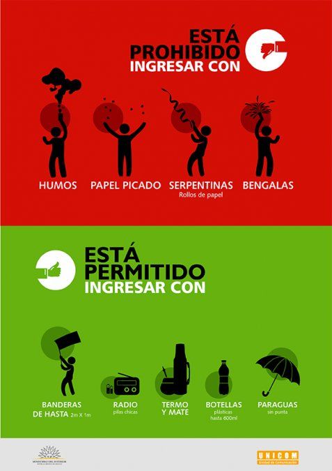 “Se podrá llevar termo y mate, radio con pilas chicas, botellas plásticas de 600 mililitros y, en caso de lluvia, paraguas sin punta”, indica la Policía.