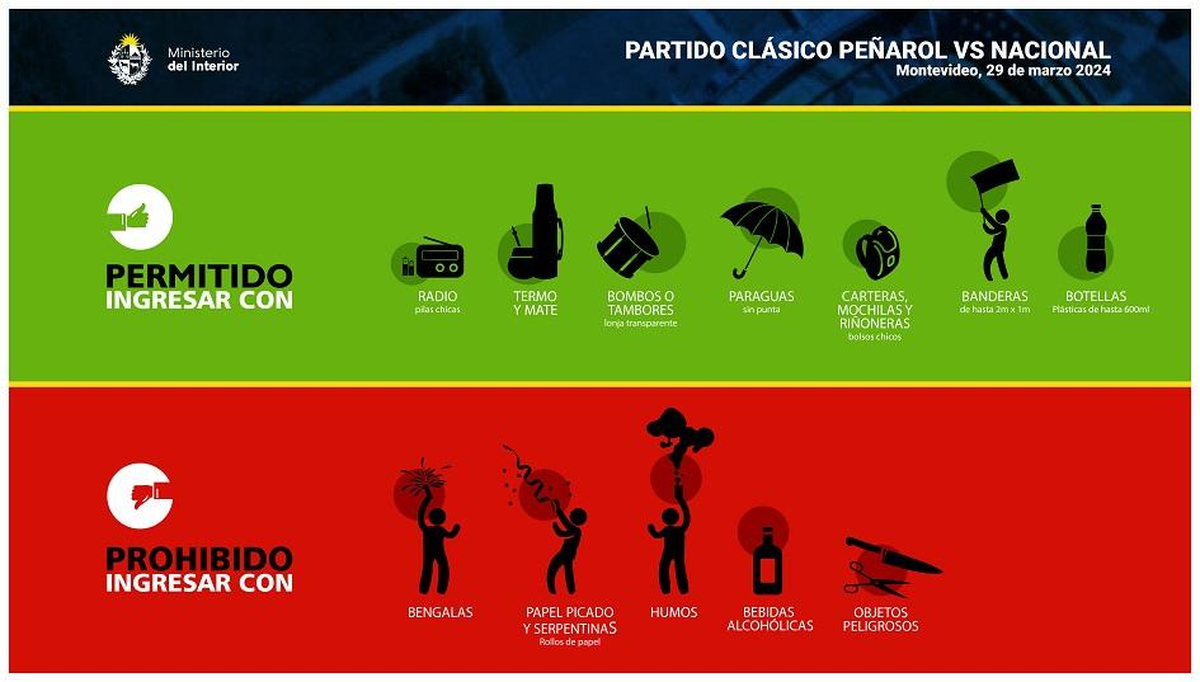 "Una vez finalizado el partido se acompañará la salida del público del estadio y se realizará un control y acompañamiento de algunas líneas de ómnibus", señaló Interior.