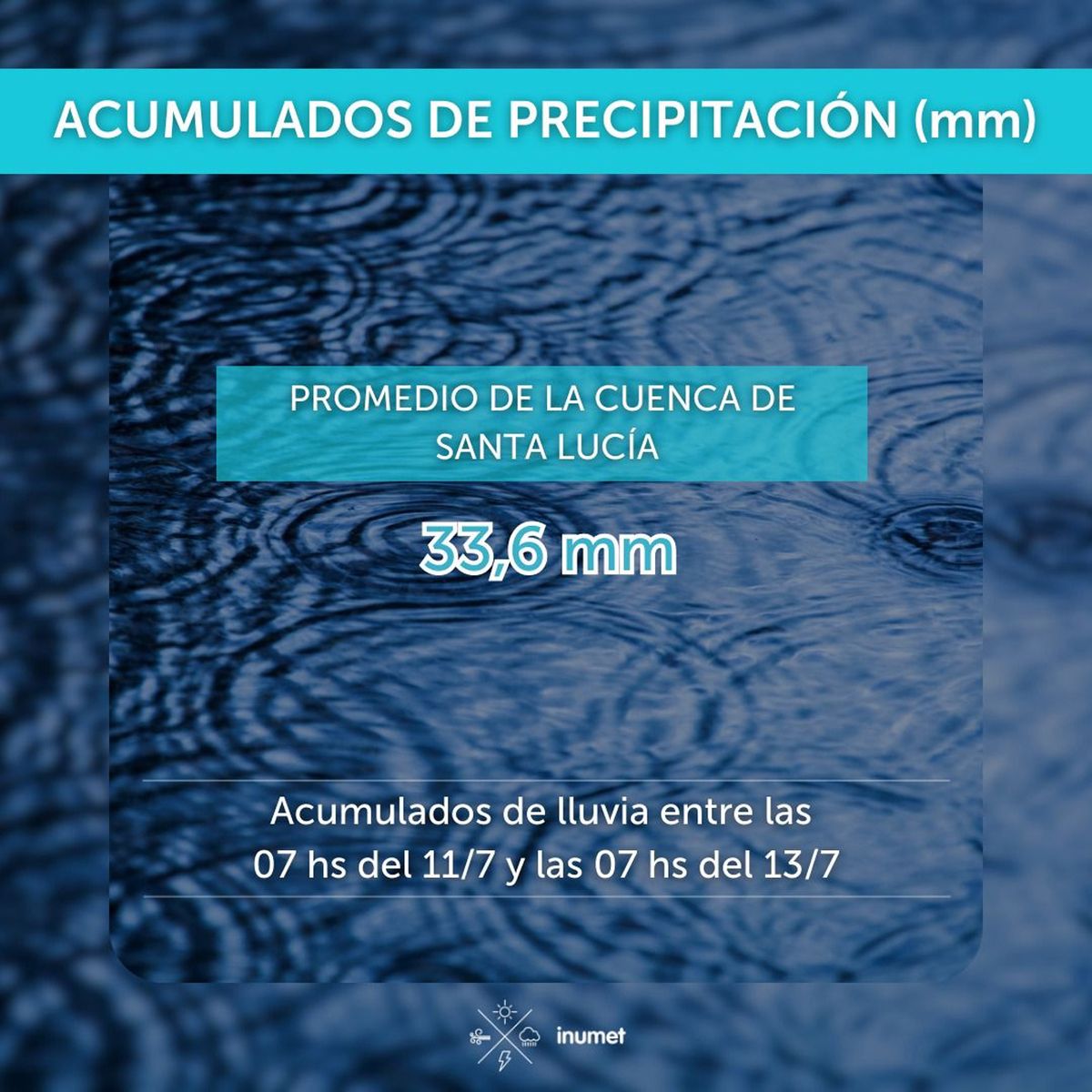 Según el informe de Meteorología, publicado este jueves de mañana, en los últimos dos días (desde la hora 7 del martes 11 a la misma hora de este jueves 13) el acumulado de lluvia en la cuenca del río Santa Lucía es de 33,6 mm.