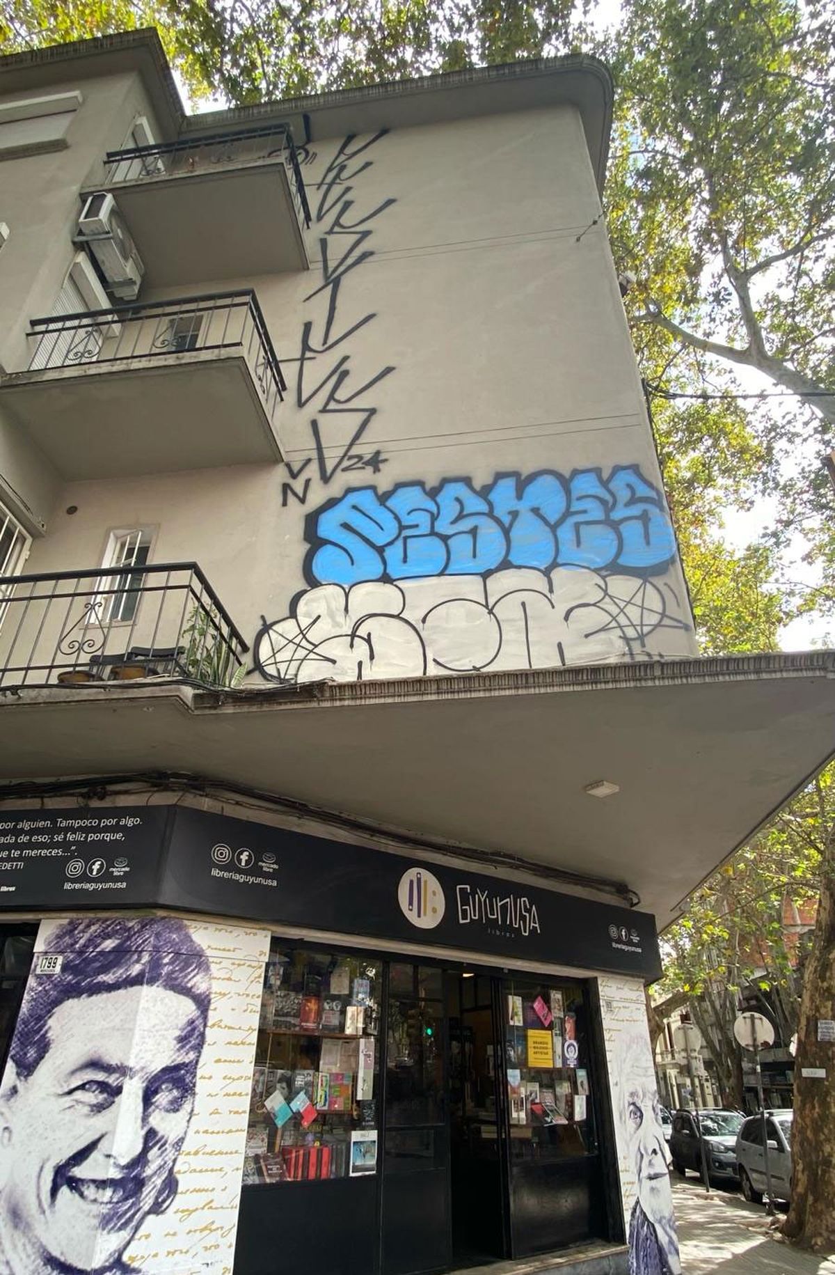 Además, en Mercedes y Trintán Narvaja también grafitearon otro edificio, este de tres pisos. Igual que en los casos anteriores, la o las personas que lo hicieron subieron e ingresaron al balcón de los apartamentos para hacer las pintadas.