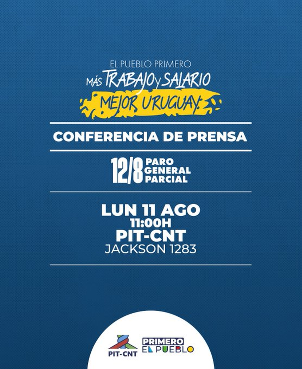El PIT-CNT convocó para este martes 12 a un paro general parcial, que en el sector público será de 24 horas, y en los sindicatos del sector privados de 9 a 13. La educación llama a paro de 24 horas.