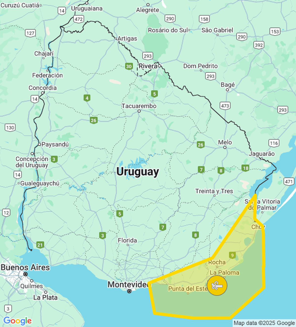 El Instituto Uruguayo de Meteorología (Inumet) actualizó la advertencia meteorológica amarilla por vientos fuertes y persistentes. Rige para gran parte de la zona costera del país, y se vuelve a modificar a la hora 15:00.