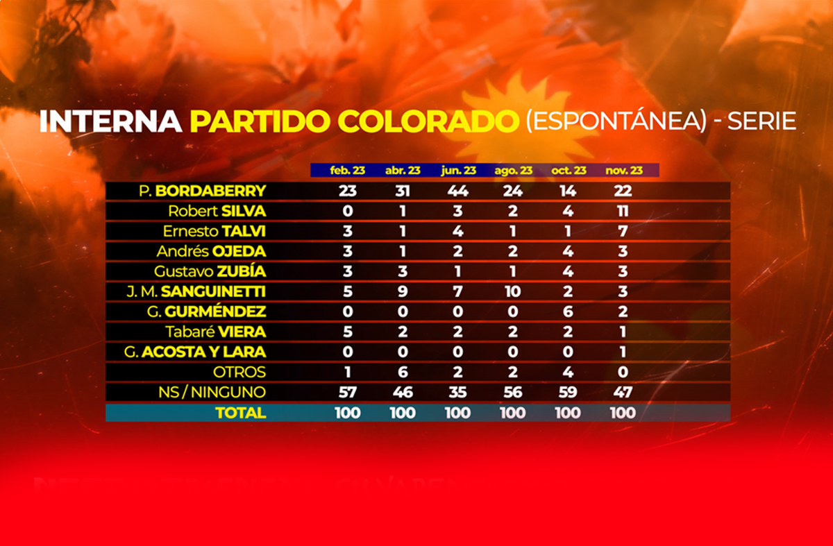 En el balance, el escenario dentro del Partido Colorado continúa siendo de alta incertidumbre. La situación es de una alta indecisión y, si Bordaberry no fuera candidato, las preferencias están fuertemente fragmentadas, con Robert Silva con algo de ventaja sobre el resto en el punto de partida.