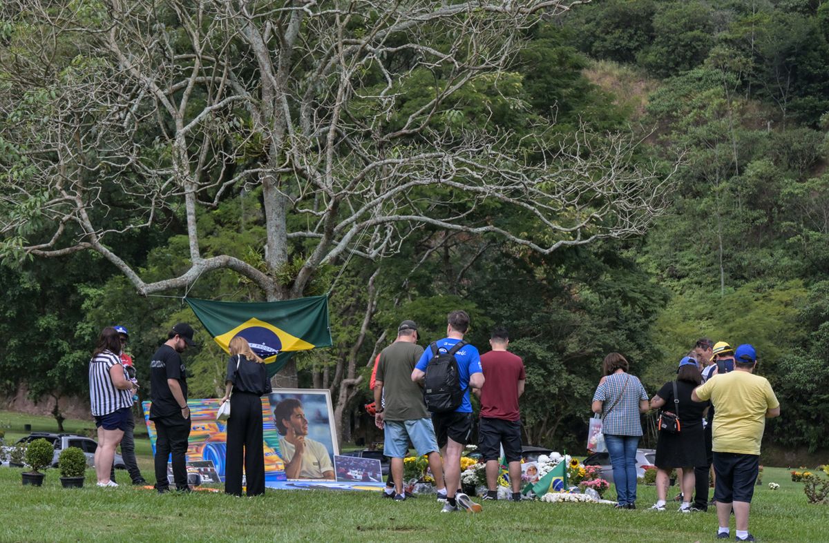 Cientos de personas acudieron desde temprano al cementerio Parque Morumby, en Sao Paulo, donde descansan los restos de Senna, y depositaron flores, fotos y banderas de Brasil en su tumba, ubicada bajo un enorme árbol, constató la AFP.