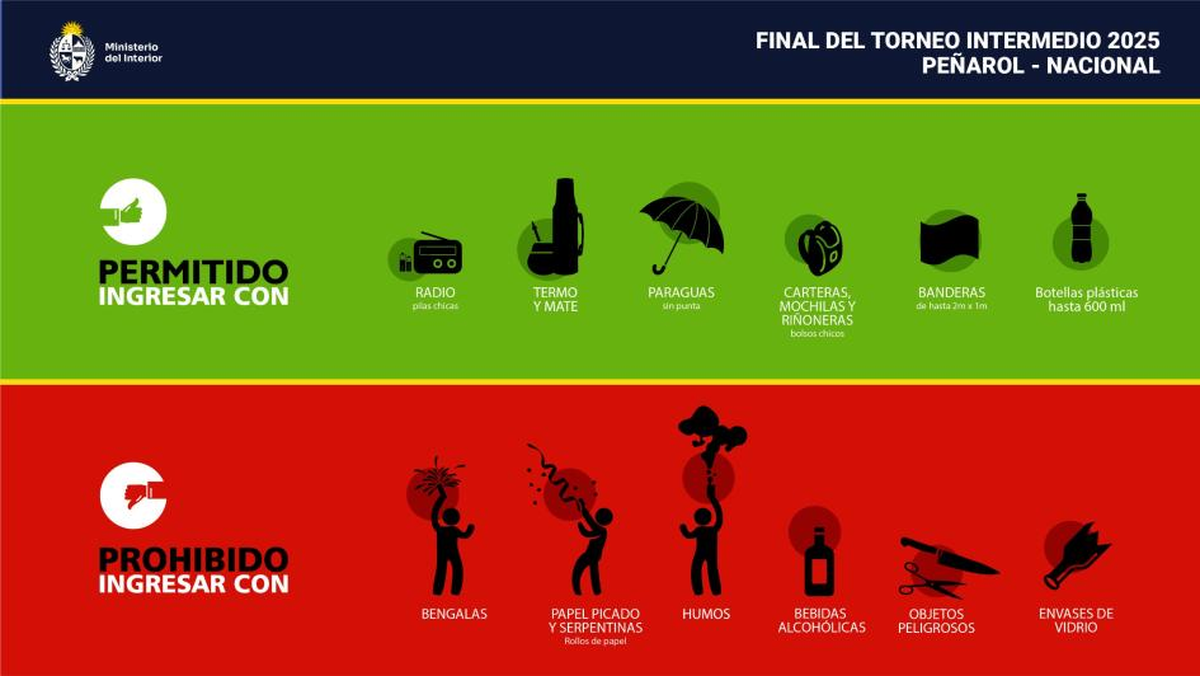 Objetos permitidos para ingresar al estadio: