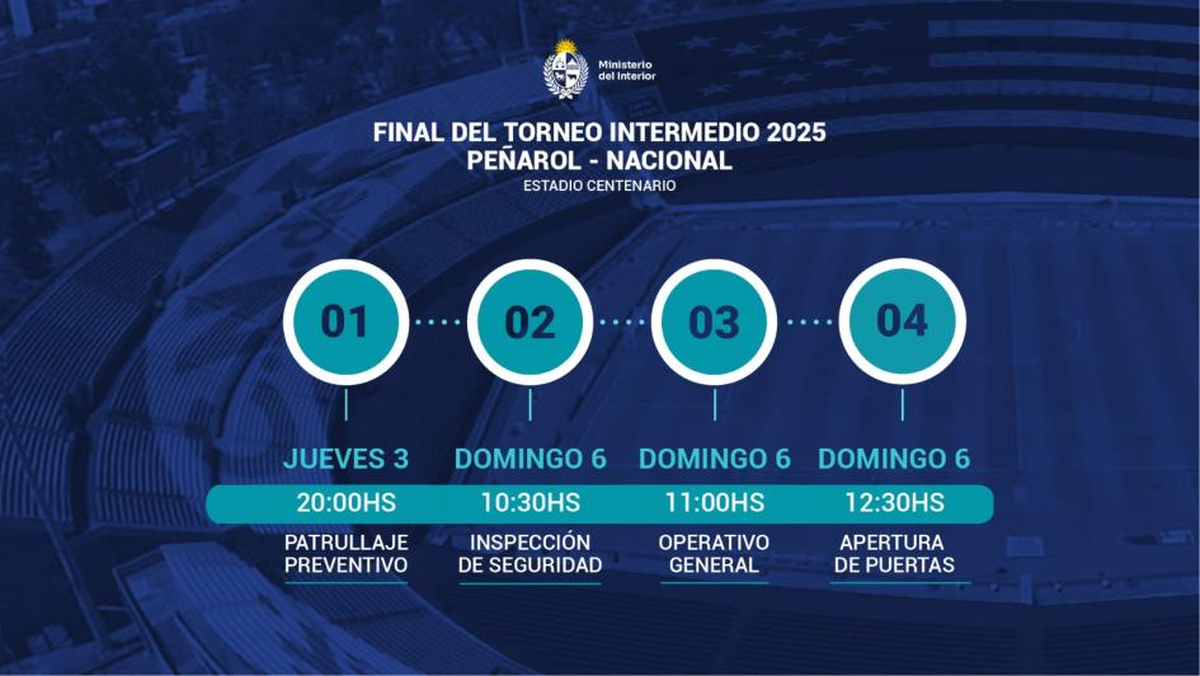 El Ministerio del Interior presentó el operativo policial para el partido clásico que se juega el domingo a las 15:00 horas, en el estadio Centenario, por el torneo Intermedio.