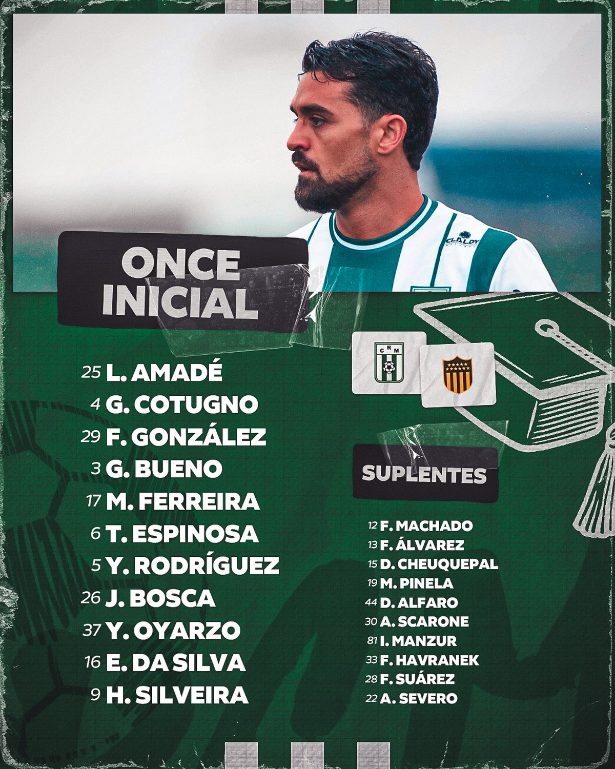 En Peñarol estuvo Leonardo Fernández desde el inicio como titular. Fue el primer partido que estuvo en cancha desde el comienzo, debido a la lesión que sufrió en el encuentro de ida por Copa Libertadores ante Racing de Avellaneda en el Campeón del Siglo.