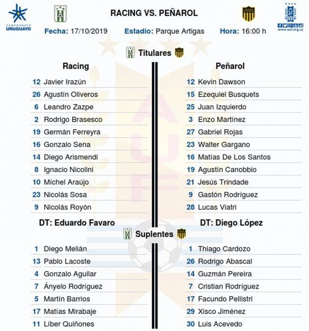 Peñarol empató con Racing 3 a 3 en Las Piedras y quedó con 11 puntos en el Clausura, que lidera Nacional con 18.