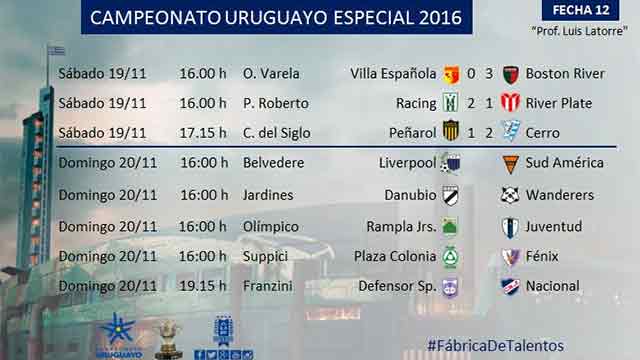 OTROS PARTIDOS. La Fecha 12 comenzó a las 16 con dos partidos. Villa Española recibió a Boston River en el Estadio Obdulio Varela y Racing a River Plate en el Parque Roberto.