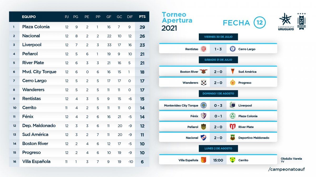 Peñarol está cuarto en la tabla de posiciones del Apertura, a ocho puntos de Plaza Colonia, el líder, a cinco de Nacional y a dos Liverpool.